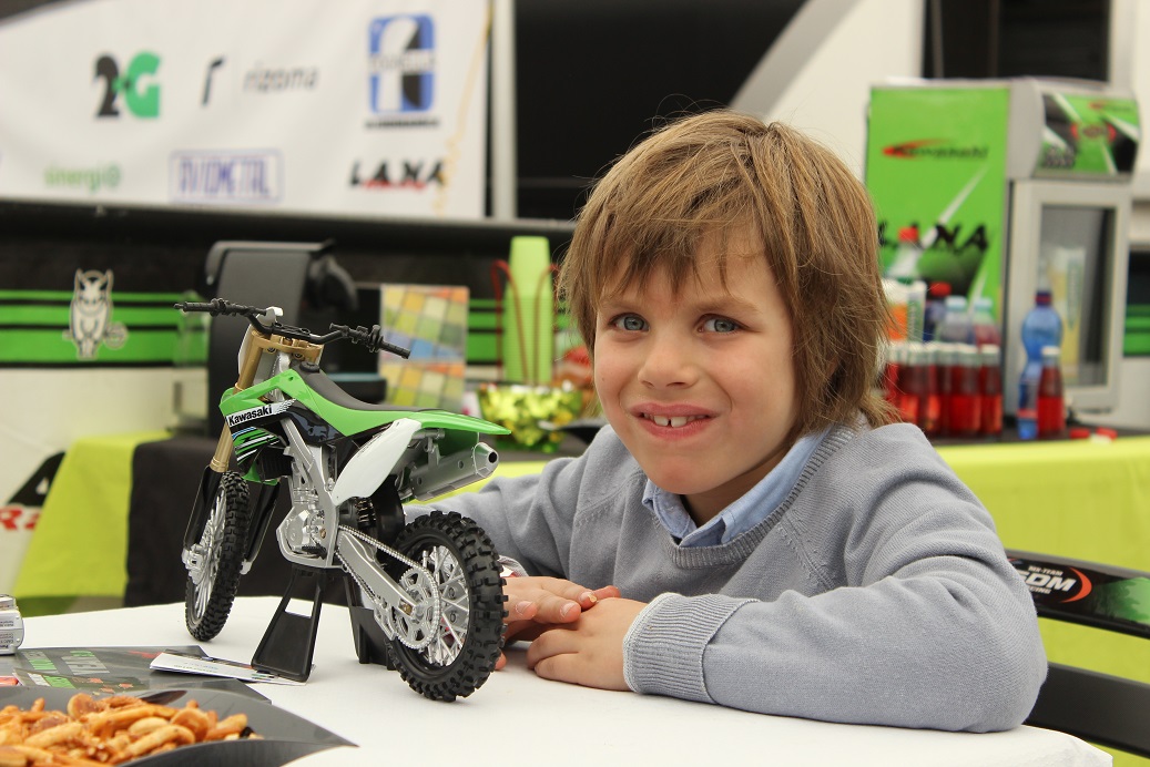 Nelle immagini vediamo il via al Campionato Italiano MX 2014 al Ciglione della Malpensa, Nicola Recchia (5) e Michele Tagliaferri (444) in azione, piccole Kawasaki crescereanno, al lavoro sotto la veranda del fantasctico  nuovo megavan del Team che vediamo poi in panoramica.